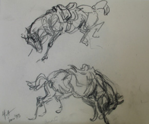 Hans förmåga och skicklighet i att snabbt kunna registrera rörelse kommer framförallt till sin rätt i hans hästteckningar. Med sina anatomiska kunskaper kunde han med några få mjuka, distinkta linjer fånga en häst i galopp eller i ett hopp.